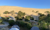 Un escalier privé et réservé au camping nous permet de gravir “facilement” la Dune pour aller y découvrir le magnifique paysage et pour assister au coucher de soleil. L’autre point fort du camping est sa piscine, toute neuve, dont nous saurons bien profiter !